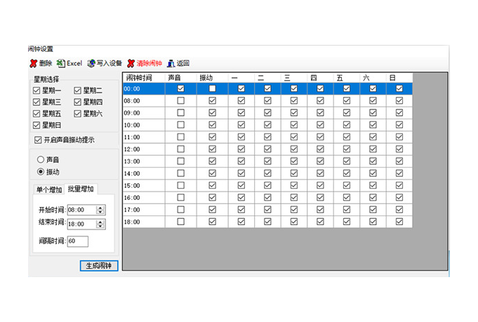 自定义添加128组闹钟,到点巡更自动提醒